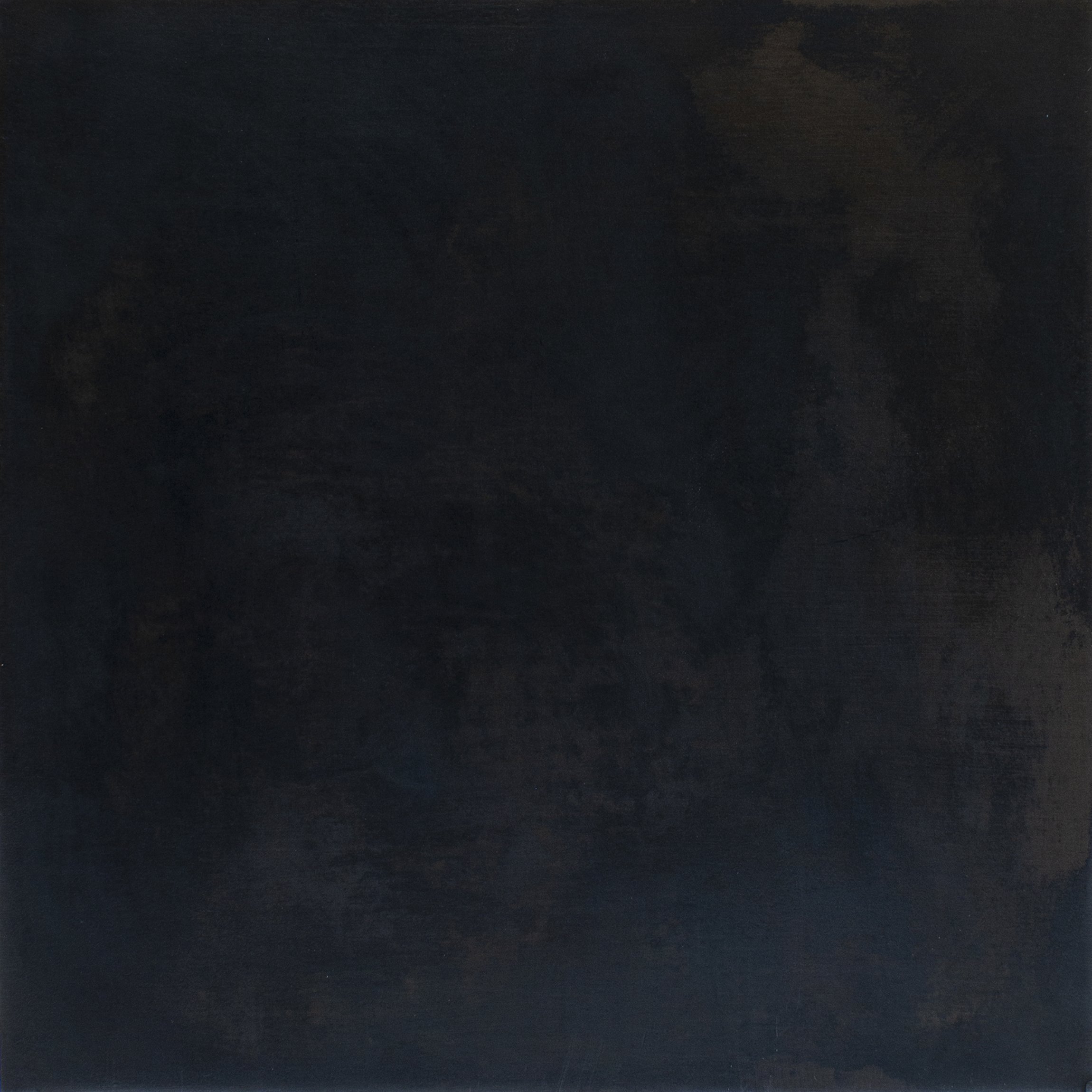A brown ceramic pot with blue and white painted abstract design on its surface, set against a plain light background.