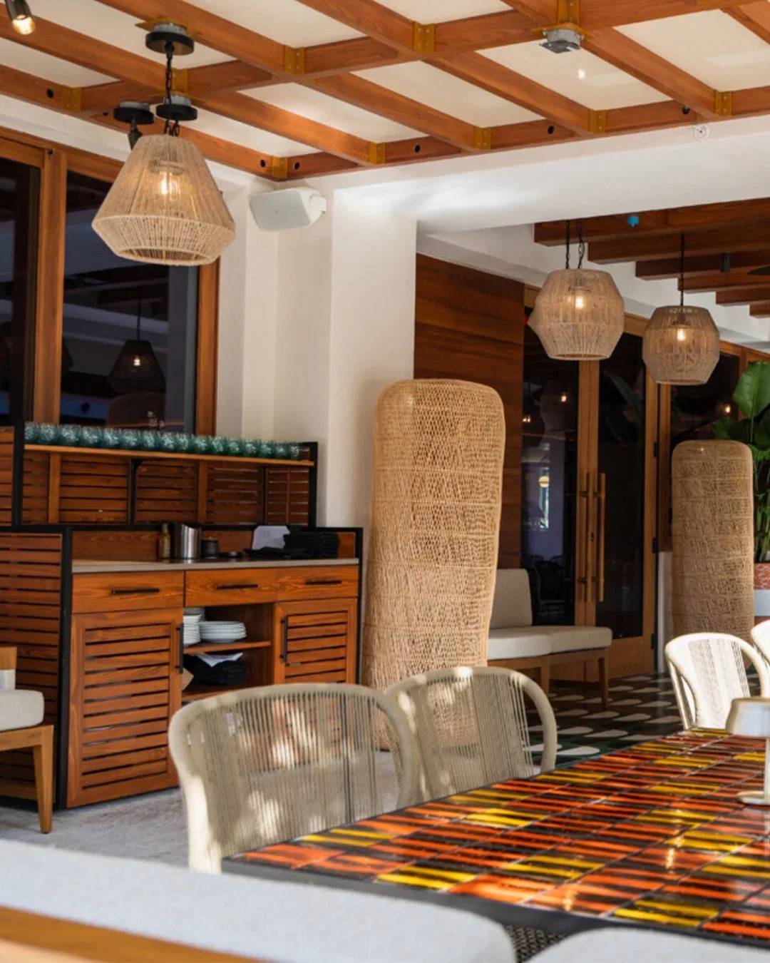 Costantini collaborated with ICRAVE and Groot Hospitality on custom seating, tile tables, and concrete and fiberglass planters.