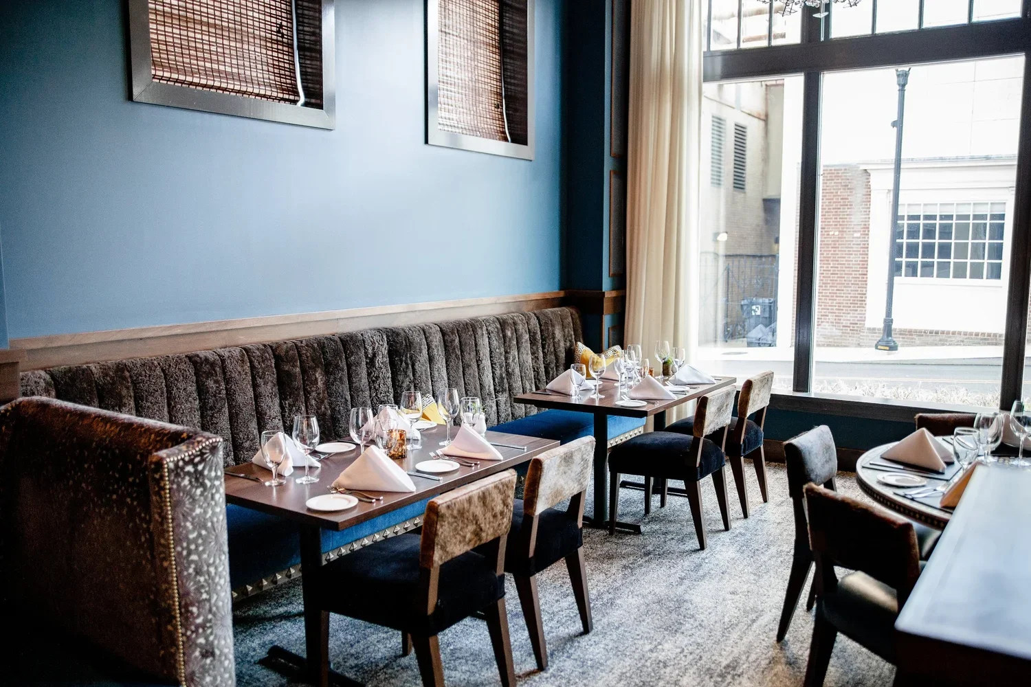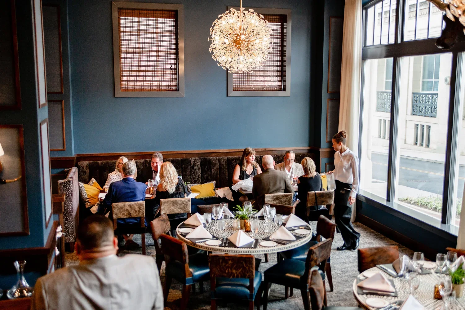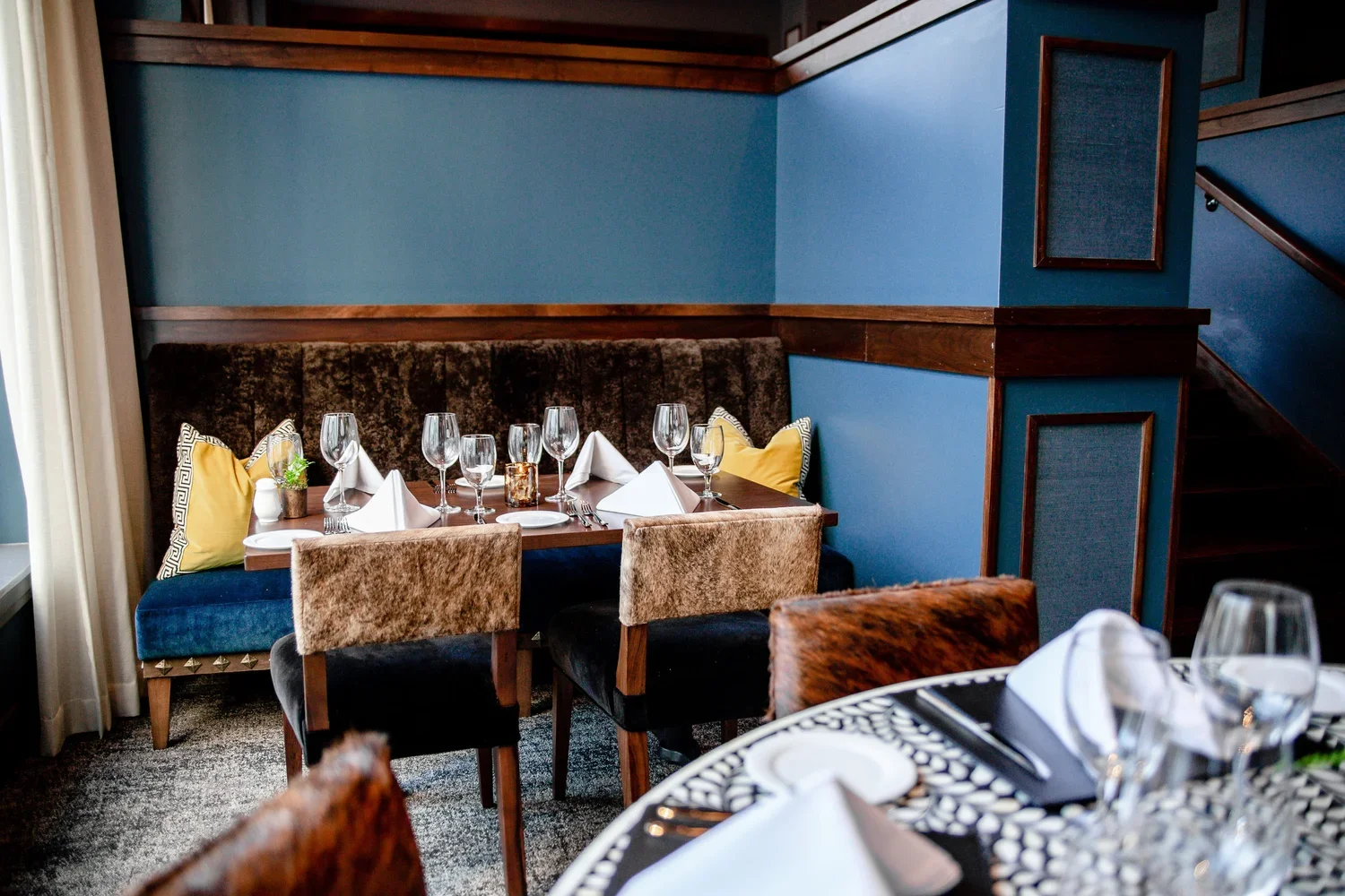 Costantini’s Bruno Chairs and Stools were specified for the Parry Group’s William and Henry Steakhouse in Lynchburg, Virginia featuring a contrasting hair hide back with leather seats.