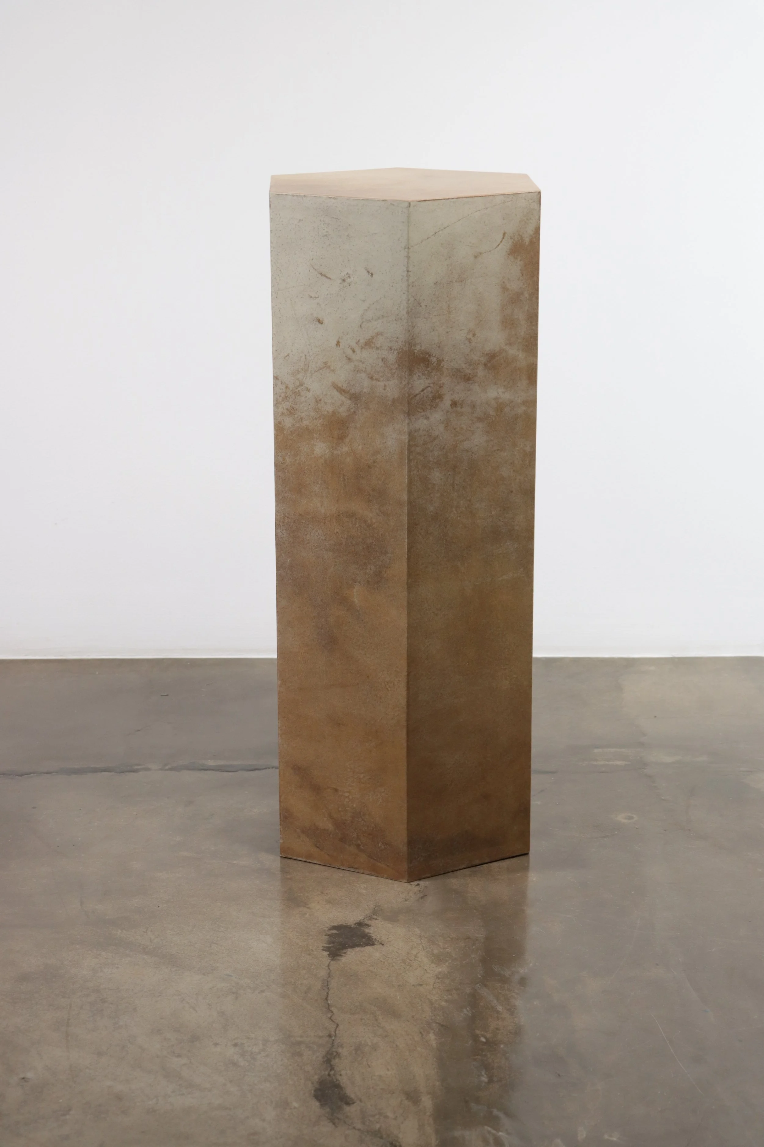 The Ottavia Side Table is a sculptural study in geometry and material. Its cylindrical form, crafted in richly grained wood, is accented with metal detailing in bronze, achieving a quiet balance of texture and proportion. Shown in Argentine Rosewood with burnished bronze trim. Custom materials and finishes available.