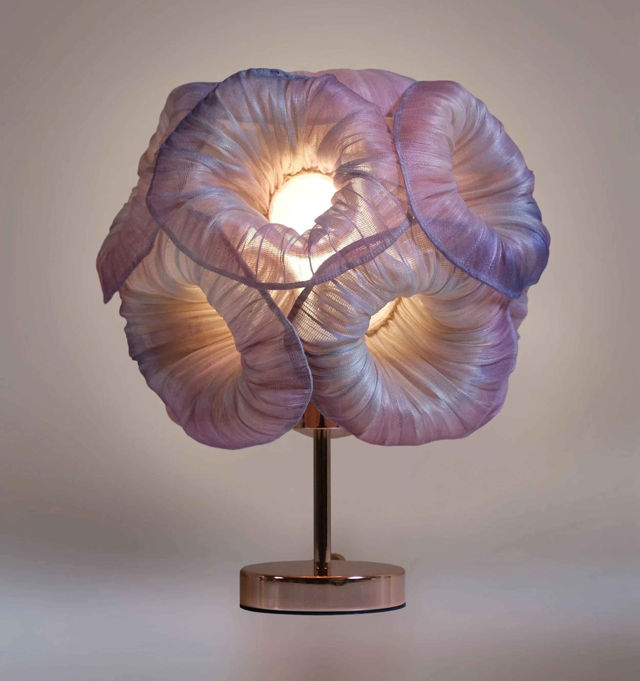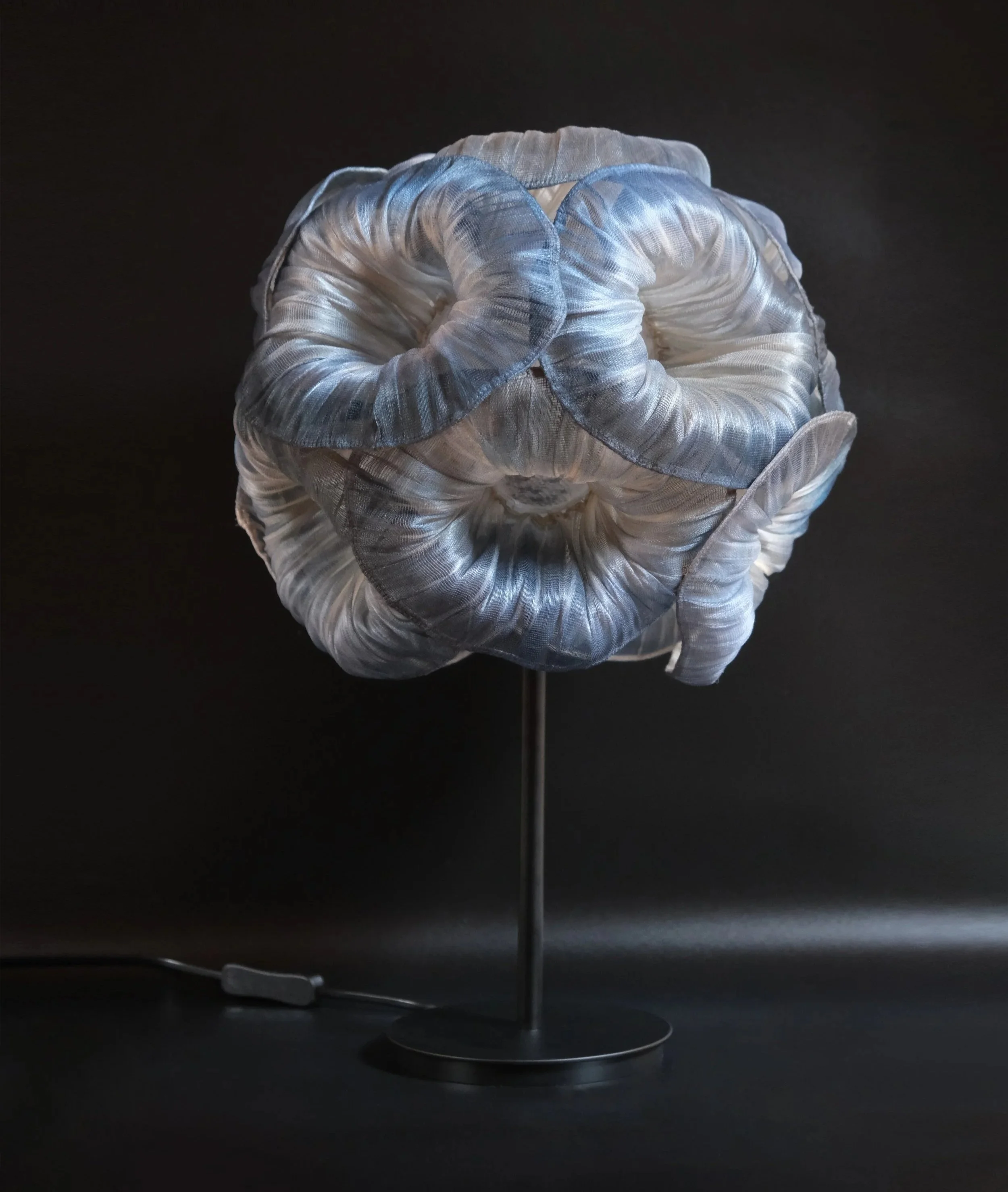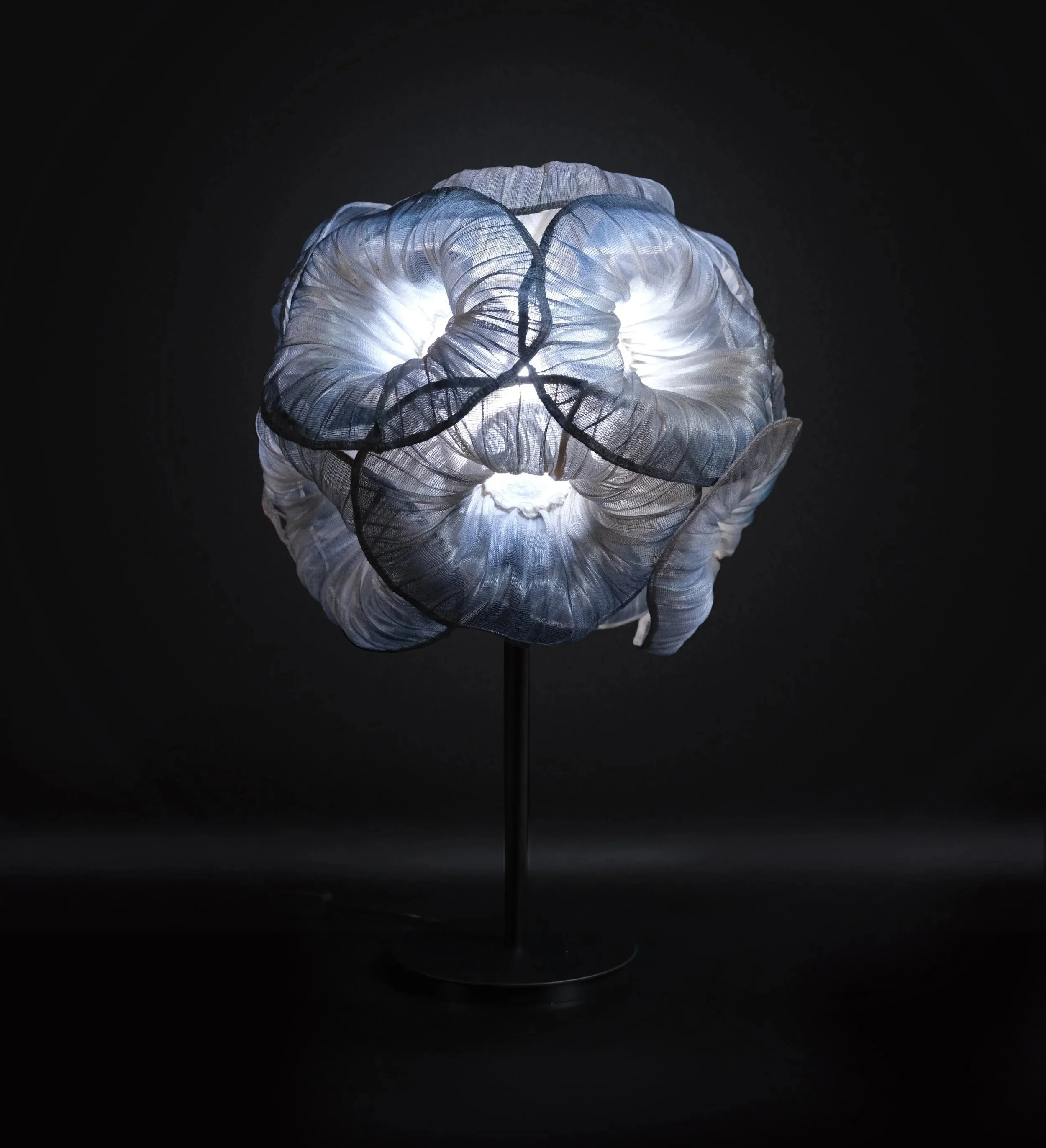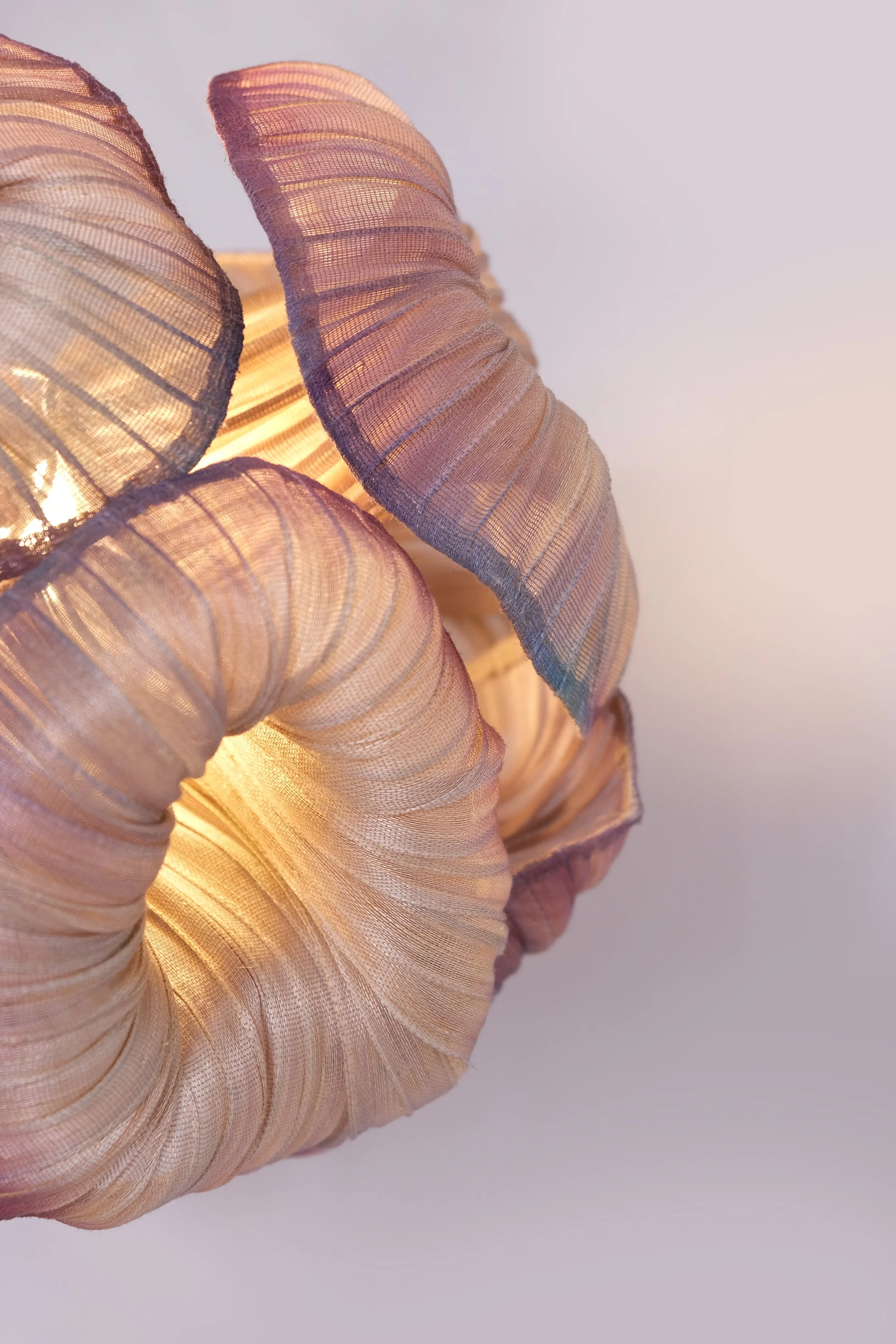 Providing soft light in an organic and unique design, the Nebula Lamp draws its inspiration from the interstellar clouds of dust and gas. Entirely handcrafted of Banaca (banana-abaca), a fiber from the Philippines woven by a community of weavers in the province of Bicol, the voluminous flowing shape is created by hand and can be remodeled according to one's liking and style thanks to its pliant quality. The Nebula lamp received a special mention from the jury at Salone Satellite during Milan Design Week 2019.