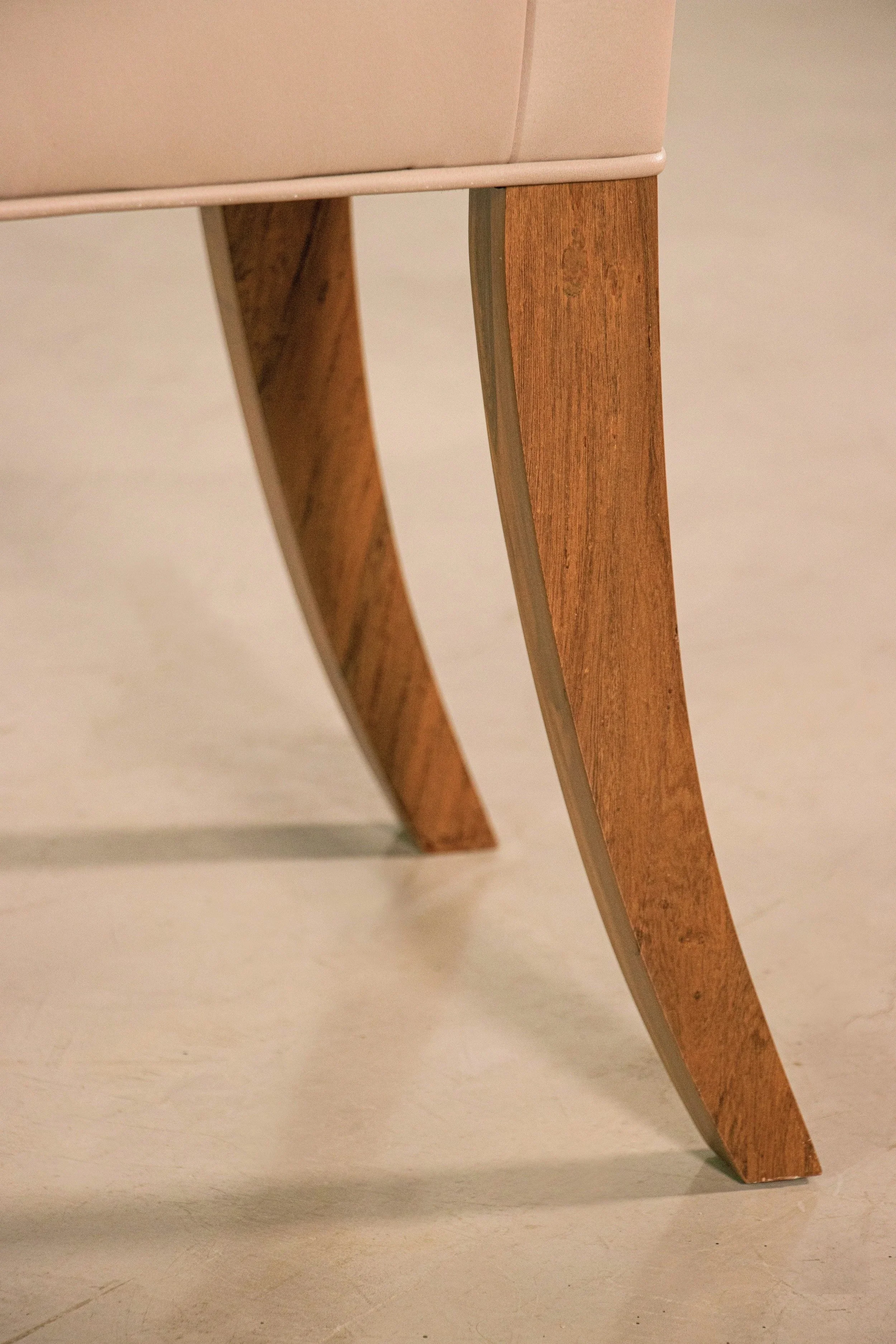 This modern chair is suitable for indoor or outdoor use and features a hand-welded brushed steel frame and the upholstery material of your choice. It includes stitched arm detailing and signature straps with customizable decorative stitching on the back.